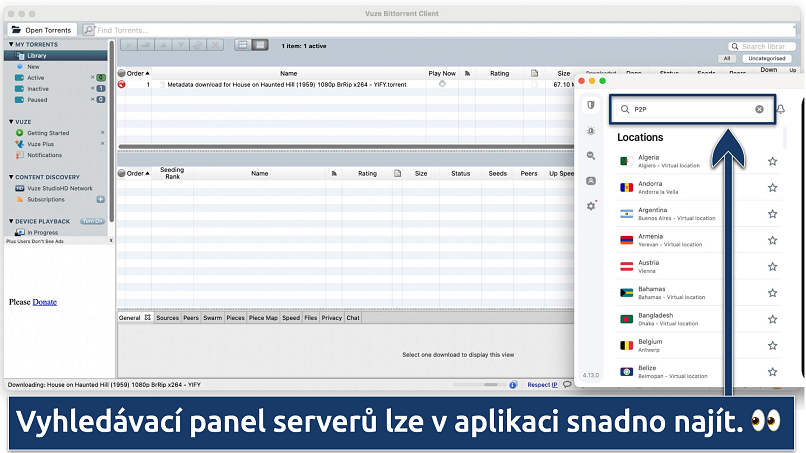 - Podporuje torrenty. Ne všechny VPN umožňují práci s torrenty, proto jsem si vybral pouze ty, se kterými to opravdu jde. Ujistil jsem se, že mají buď speciální servery pro torrenty, nebo umožňují sdílení P2P v celé své síti.