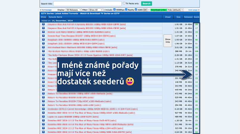 EZTV se specializuje na TV pořady, přičemž jeho web navštíví přibližně 20 milionů uživatelů měsíčně. Nemá možná tak rozsáhlou nabídku jako větší P2P stránky The Pirate Bay nebo 1337x, ale je to skvělé místo pro hledání televizních pořadů. Navíc tu najdete hromadu starších kousků.