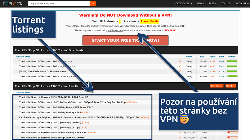 I P2P weby s dobrou pověstí se musí občas vypořádat s hackery nebo škodlivými odkazy, takže při torrentování doporučuji používat VPN. Při sdílení souborů je vaše IP adresa viditelná pro seedery. To může ohrozit vaši identitu a vést k potenciálním útokům.